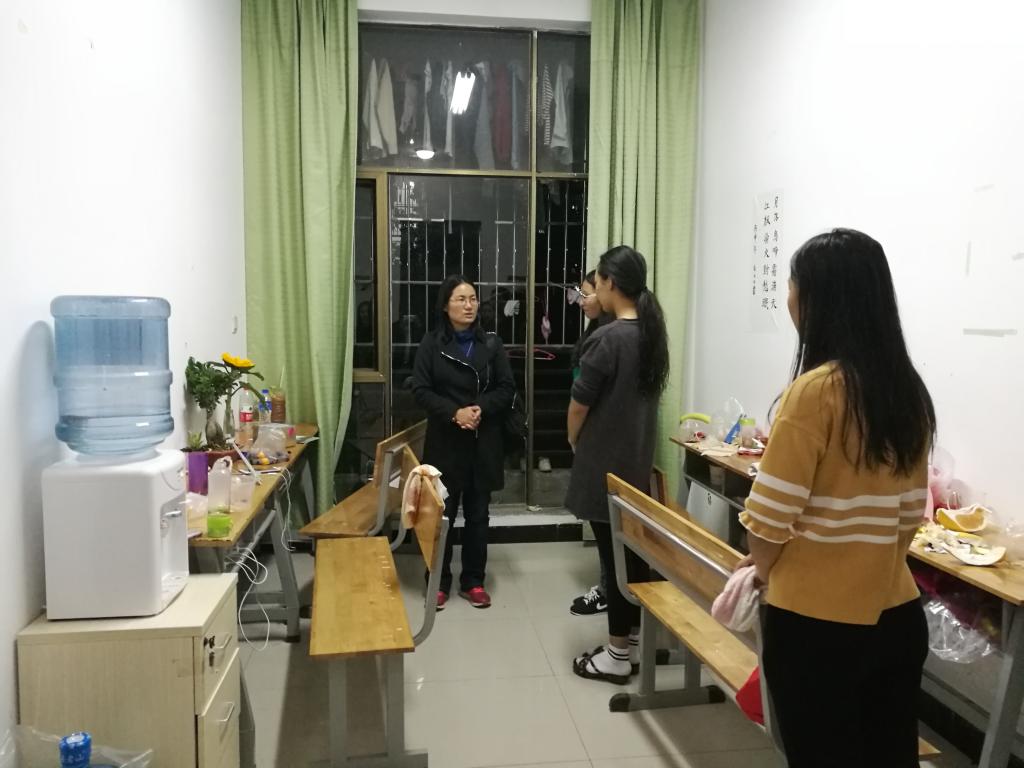 11月29日晚上,学院院长梅英教授在专职辅导员邓明川老师的陪同下走访忙角学生宿舍。时令已进入深冬,天气早晚较冷,为了解学生近期的生活情况、学习状况及对学院相关工作的意见建议,梅院长深入忙角楠苑六幢、榕苑七幢、榕苑四幢部分学生宿舍,详细询问学生相关情况。每到一间学生宿舍,梅院长都亲切地询问学生近期的生活学习情况,生活上有无困难,学习是否跟得上,任课老师怎么样……,同时叮嘱学生要搞好宿舍室友关系,营造良好的宿舍氛围,充分利用学校资源,在学习、专业技能、兴趣爱好、综合素质等方面努力提升自己,为将来更好的就业打下坚实基础。