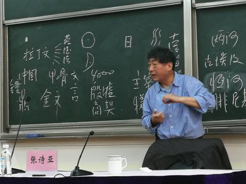 此次讲座结合我校“云南省少数民族语言文字基础教育教师培训基地”建设要求,以“民族语言与民族教育”为题,由学校首席教授彭文斌老师主持,教师教育学院250名师生参加了讲座。讲座过程中,张诗亚教授对幽默风趣地文字发展史作了梳理,肯定了中国文字的历史地位和不可替代性,彰显了中国文化的自信。在此基础上,从字源上解析了“族”字之本意,对民族认同的核心---语言与文字做了价值肯定,让参与讲座的师生享受了一场学术饕餮大餐。