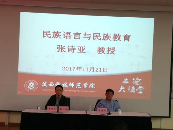 2017年11月21日,西南大学民族教育与心理研究中心张诗亚教授(博士生导师)接受学校邀请,莅临我校“立德大讲堂”开展《民族语言与民族教育》专场讲座。